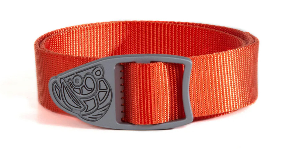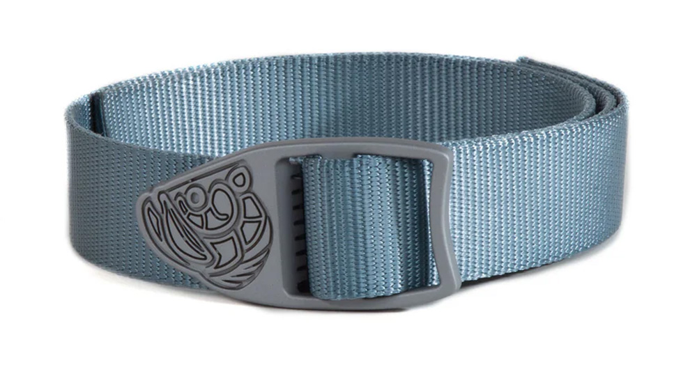 Nylonový opasek se zinkovou přezkou, který lze zkrátit na požadovanou délku a zakončit s pomocí plamene, aby nedošlo k třepení.