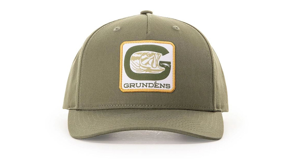 Klasická truckerka se středně vysokou korunou a nastavitelným zapínáním na patentky. Nabízí výrazný design s motivem okouna od značky Grundéns na originální kšiltovce značky Richardson.