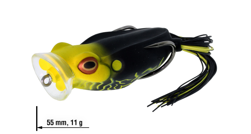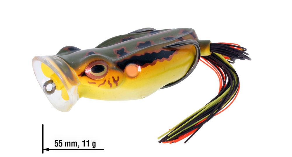 Spittin’ Wa je ideální volbou ve chvílích, kdy potřebuješ na hladině vyvolat větší rozruch. Tlamka ve tvaru kalíšku s kanálky vytváří při vedení stopu bublinek, která láká více dravců k záběrů. Tato nástraha je mimořádně univerzální – skvěle „chodí“ ze strany na stranu (walking frog) a při krátkých, razantních potazích vydává výrazný chugging zvuk.