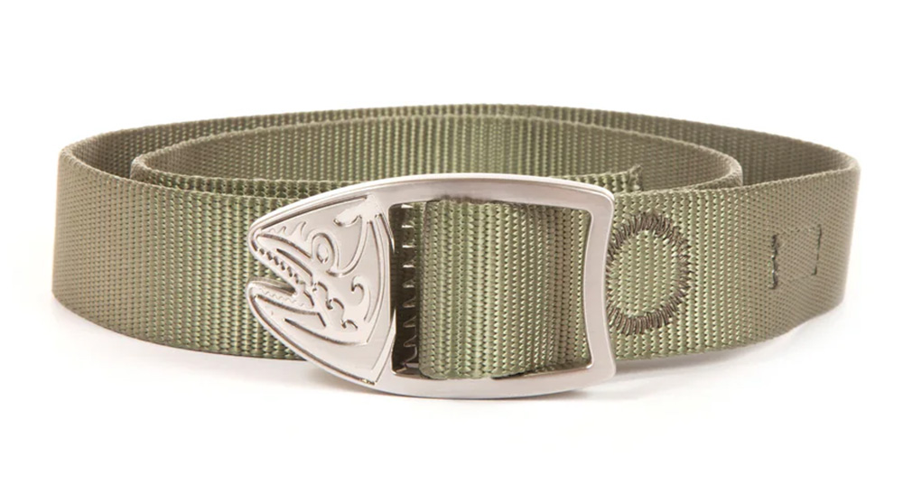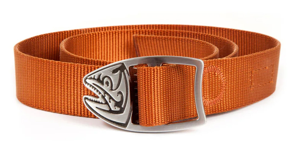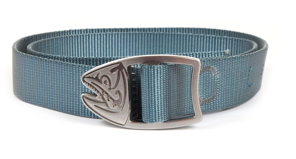 Nylonový opasek se zinkovou přezkou, který lze zkrátit na požadovanou délku a zakončit s pomocí plamene, aby nedošlo k třepení.
