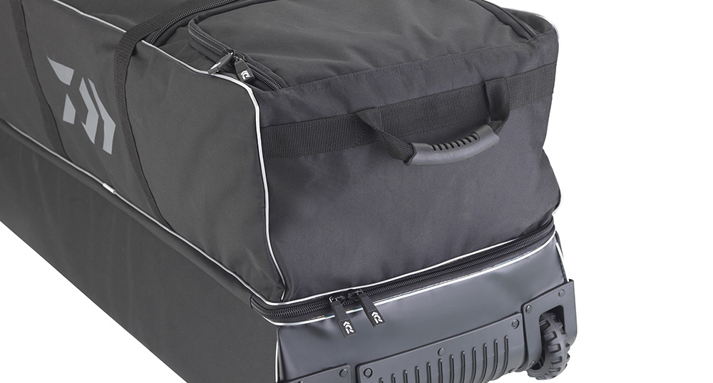 Velmi kvalitní, velká a robustní cestovní taška na kolečkách se dvěma velkými přihrádkami. Do spodní přihrádky můžete snadno uložit cestovní pruty, navijáky, nástrahy atd. Díky bočnímu vyztužení a silnému polstrování v horní části je vaše náčiní dokonale chráněno. Horní přihrádka nabízí prostor pro oblečení, boty atd.