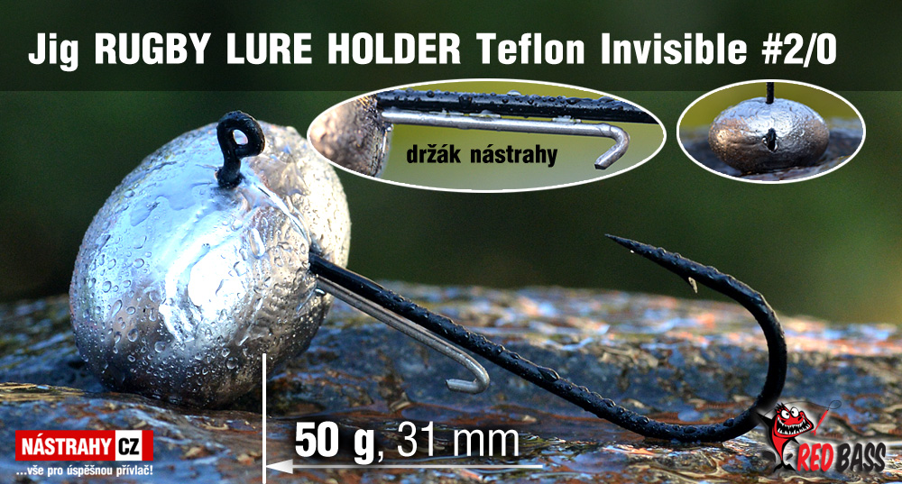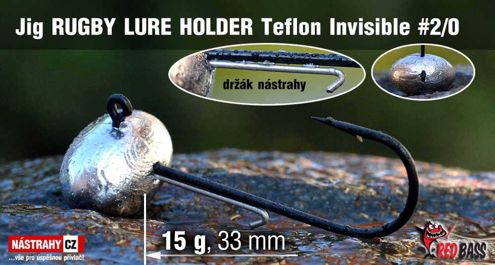 Jigové hlavičky s "držákem" nástrahy - díky němu nástraha na háčku lépe drží a hůře se přetáčí. Tvar jigovky "RUGBY", neboli tvar míče na hru ragby, zajišťuje nižší váznutí na dně - takřka vždy směřuje hrot po dopadu na dno směrem vzhůru. Jigovka se jen obtížně položí na bok či "na znak". Klíčová vlastnost úpravy TEFLON INVISIBLE je minimální viditelnost ve vodě díky teflonové povrchové úpravě - háček se téměř neleskne. Mimo to jsou extrémně ostré a pevné při velmi nízké hmotnosti. Podobný produkt budete hledat jen velmi těžko!